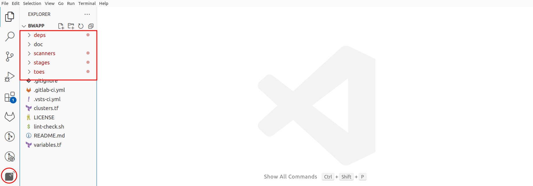 You should see the Fluid Attacks extension icon in the IDE’s activity bar and red dots on files with identified vulnerabilities. This confirms successful configuration.