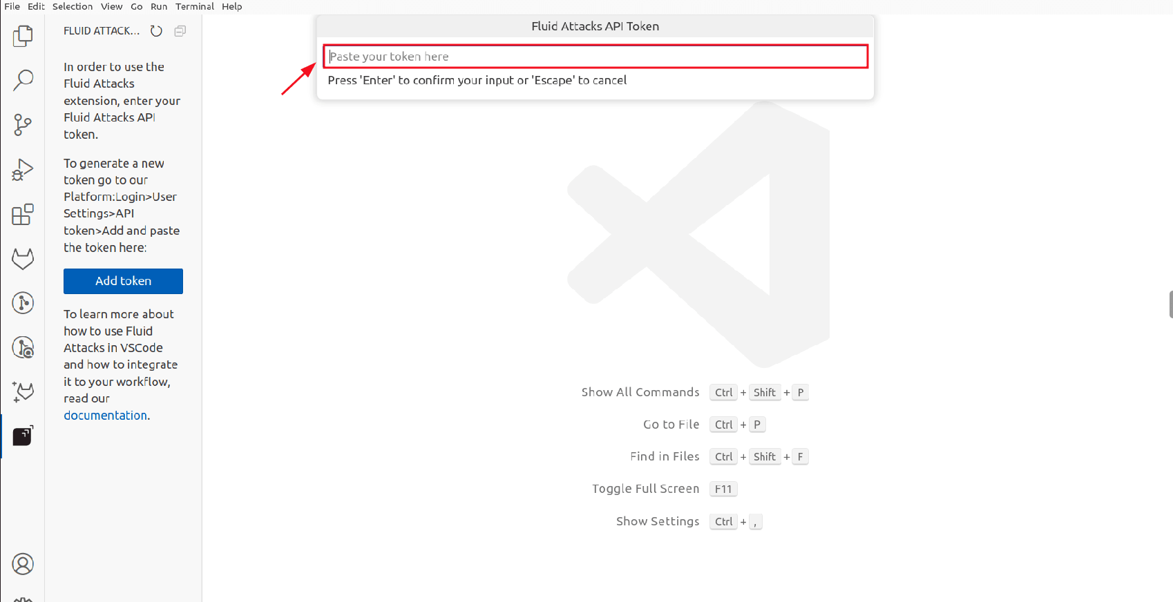 After downloading the extension, you need to configure it to connect the Fluid Attacks platform with VS Code. This can be done in two ways: