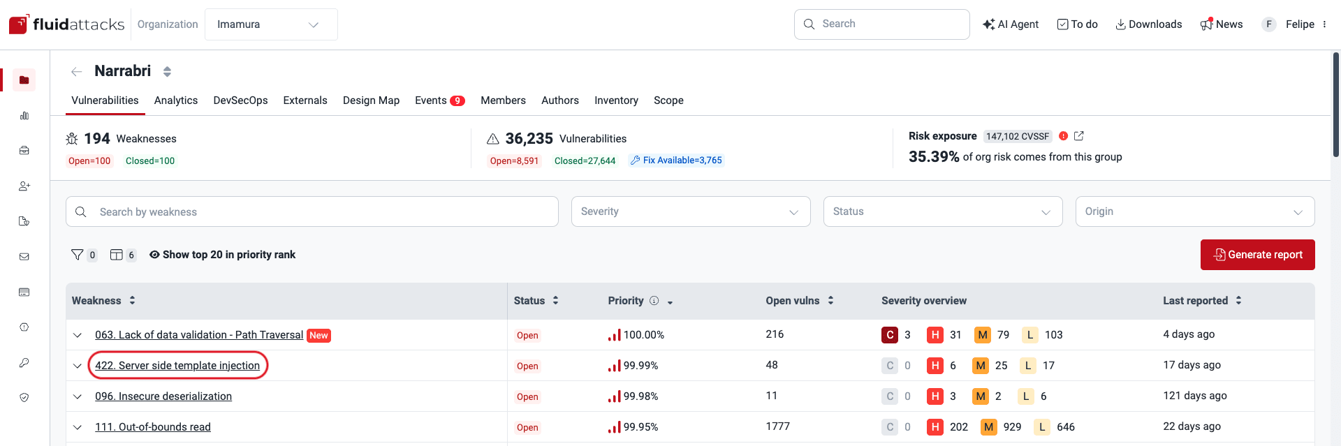 Enter the group where the vulnerability is located, then click on the weakness name.